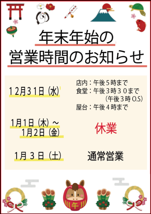 年末年始営業時間のお知らせ